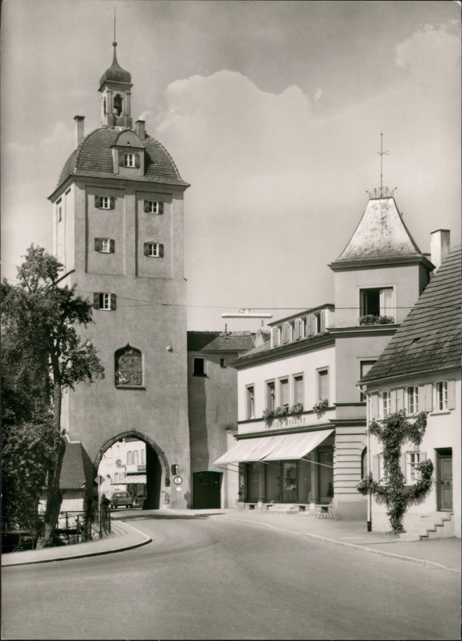 Photo Card: Strassen Partie mit Torbogen-Durchfahrt, Geschäft - Gundelfingen (Donau)