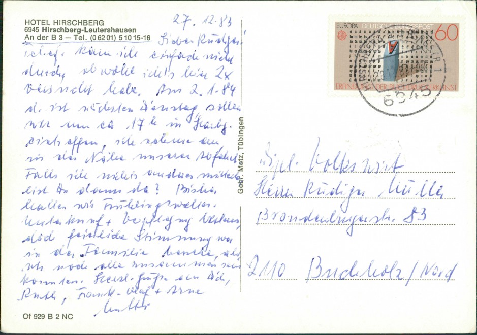 Photo Card: HOTEL HIRSCHBERG Ortsteil Leutershausen a.d. B3 - Hirschberg a.d. Bergstraße