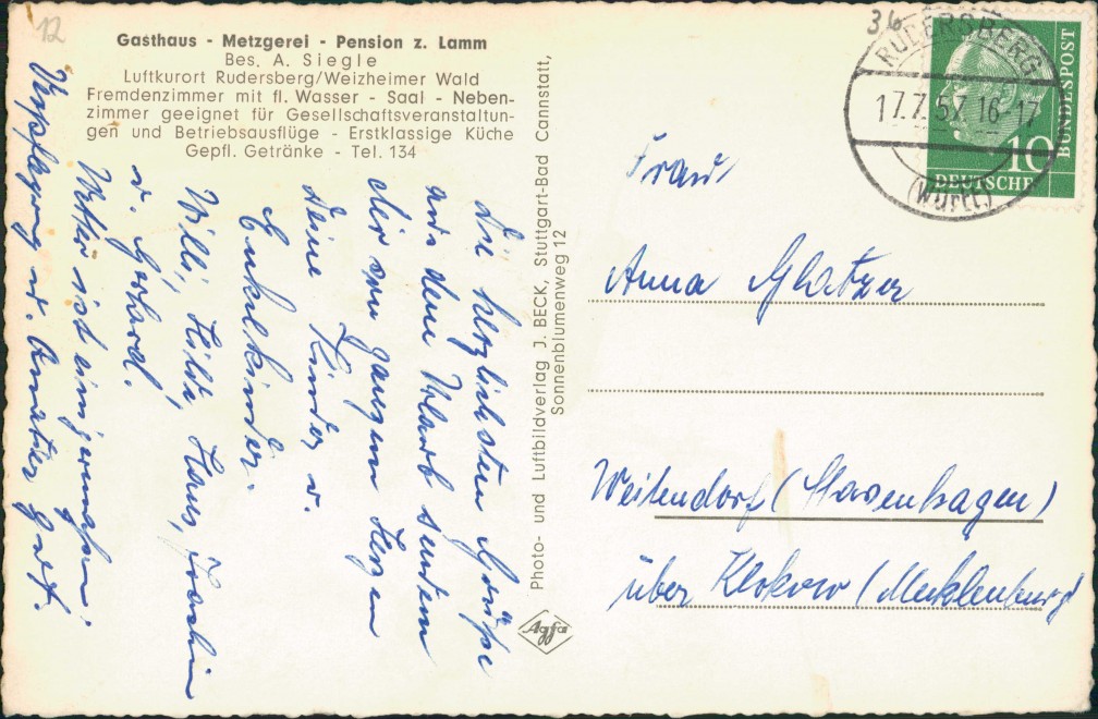Postcart: Gasthaus - Metzgerei - Pension z. Lamm - Rudersberg