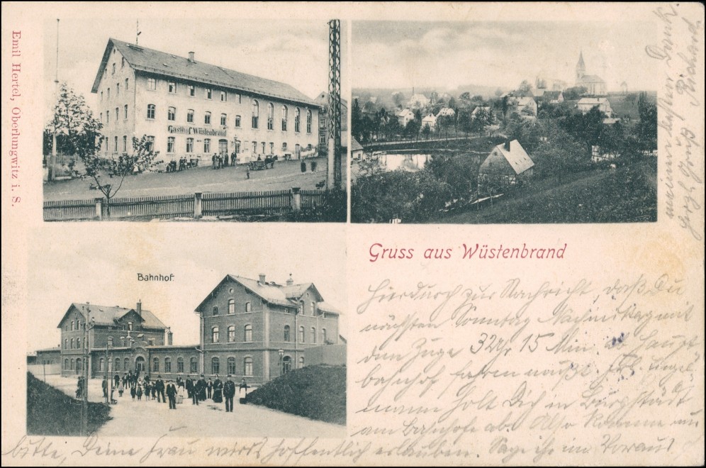 Postcart: 3 Bild Gasthaus, Bahnhof - Wüstenbrand-Hohenstein-Ernstthal