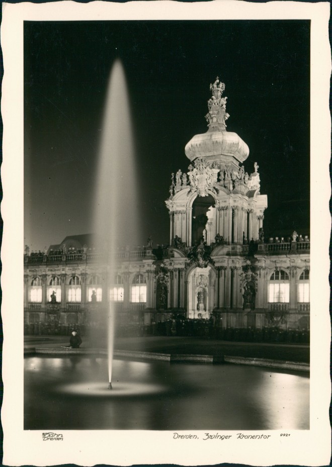 Postcart: Zwinger Kronentor Fontaine bei Nacht - Innere Altstadt-Dresden