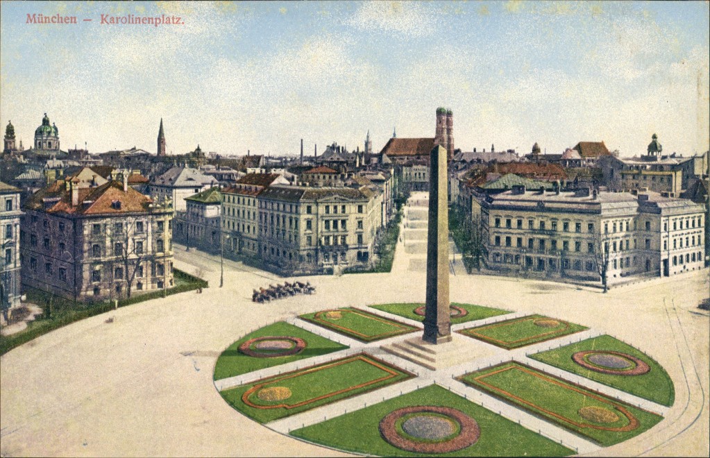 Postcart: Obelisk am Karolinenplatz Panorama Rondell - Munich