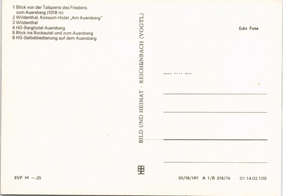 Photo Card: DDR Mehrbild-AK ua. Konsum-Hotel, Berghotel Talsperre uvm. - Auersberg (Erzgebirge)