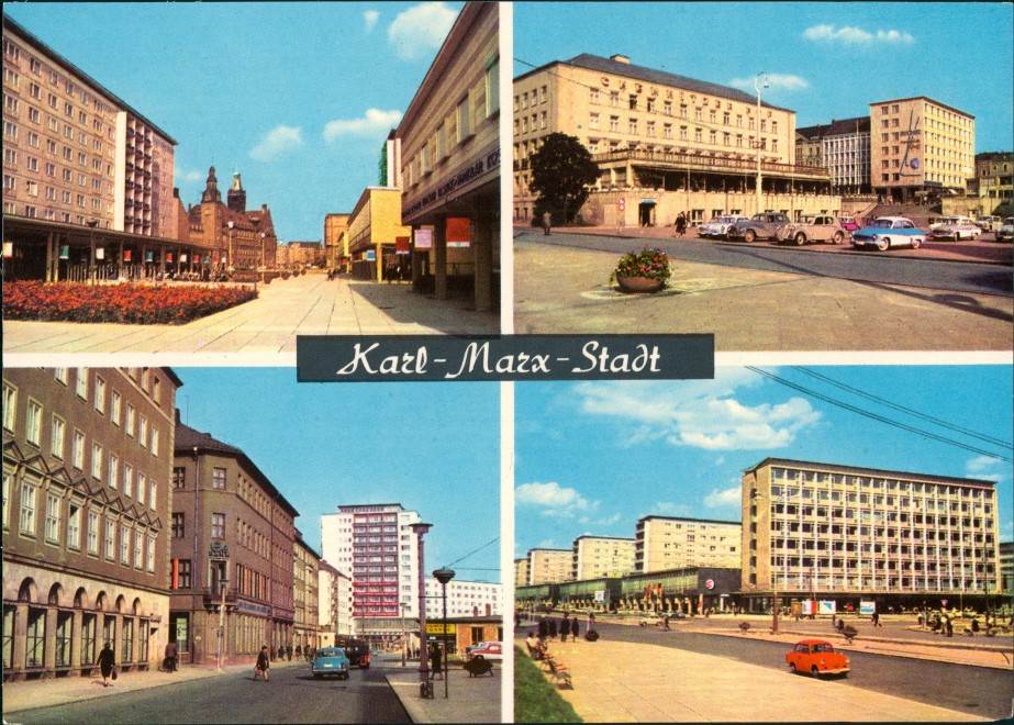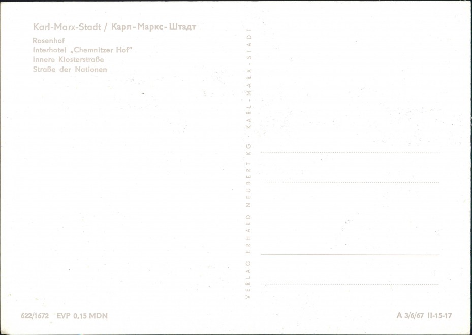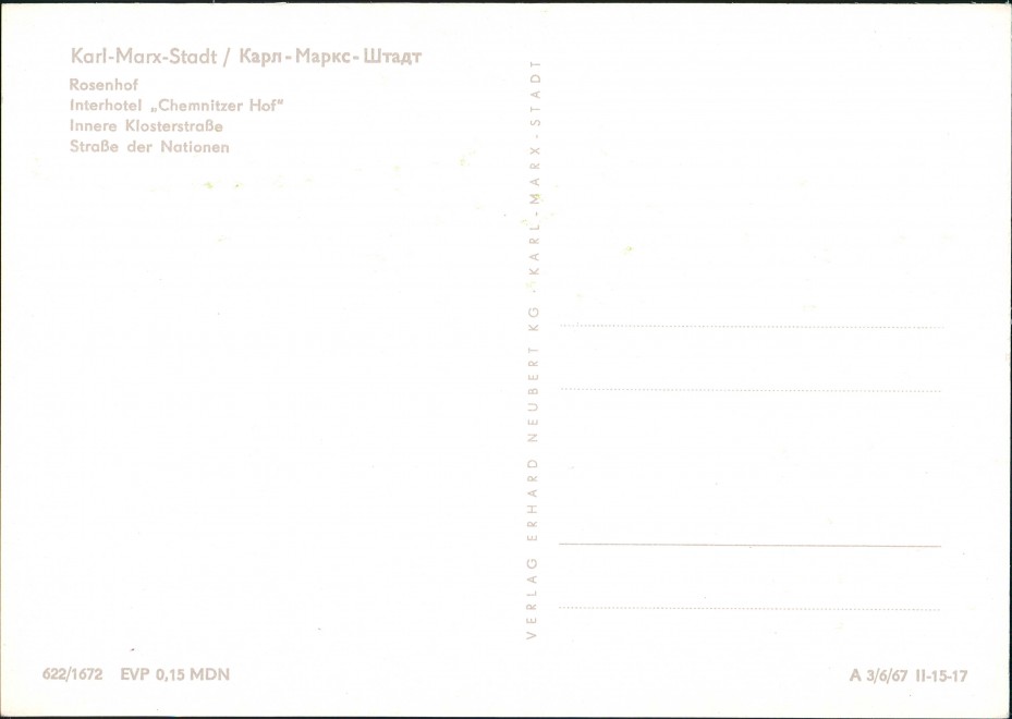 Postcart: Interhotel, Klosterstraße, Straße der Nationen - Chemnitz