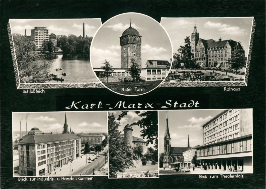 Postcart: Roter Turm, Teich, Handelskammer - Chemnitz