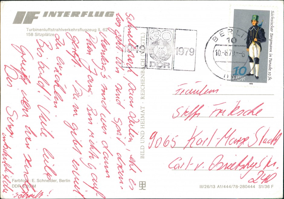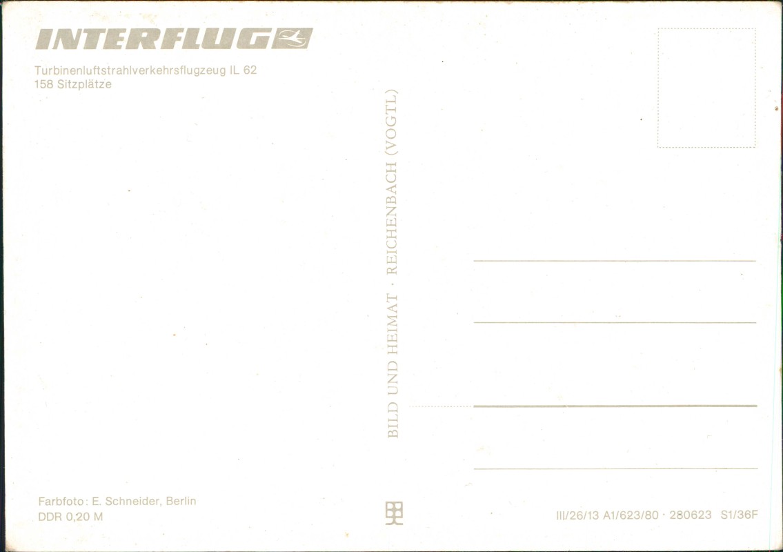 Postcart: Turbinenluftstrahlverkehrsflugzeug IL 62 INTERFLUG