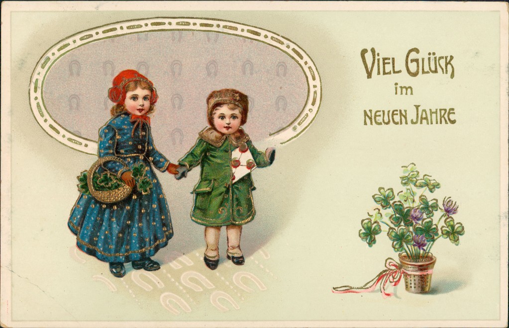 Postcart: Glückwunsch Neujahr Silvester 2 Kinder Glück Neues Jahr