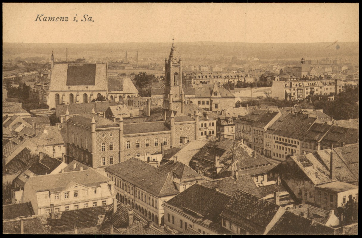 Postcart: Blick über die Stadt - Fabriken - Kamenz