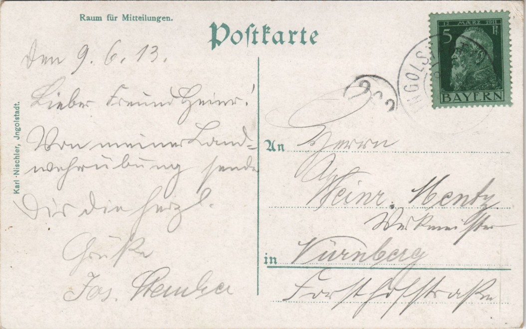 Postcart: Straßenpartie am Münzberger Tor - Ingolstadt
