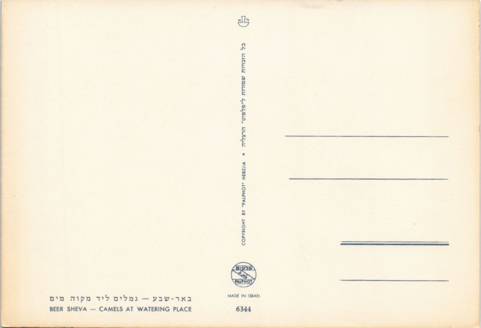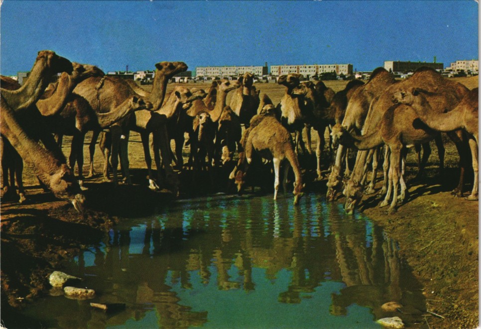 - CAMELS AT WATERING PLACE, Kamel Kamele, Israel AK