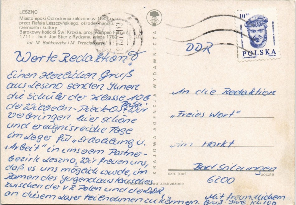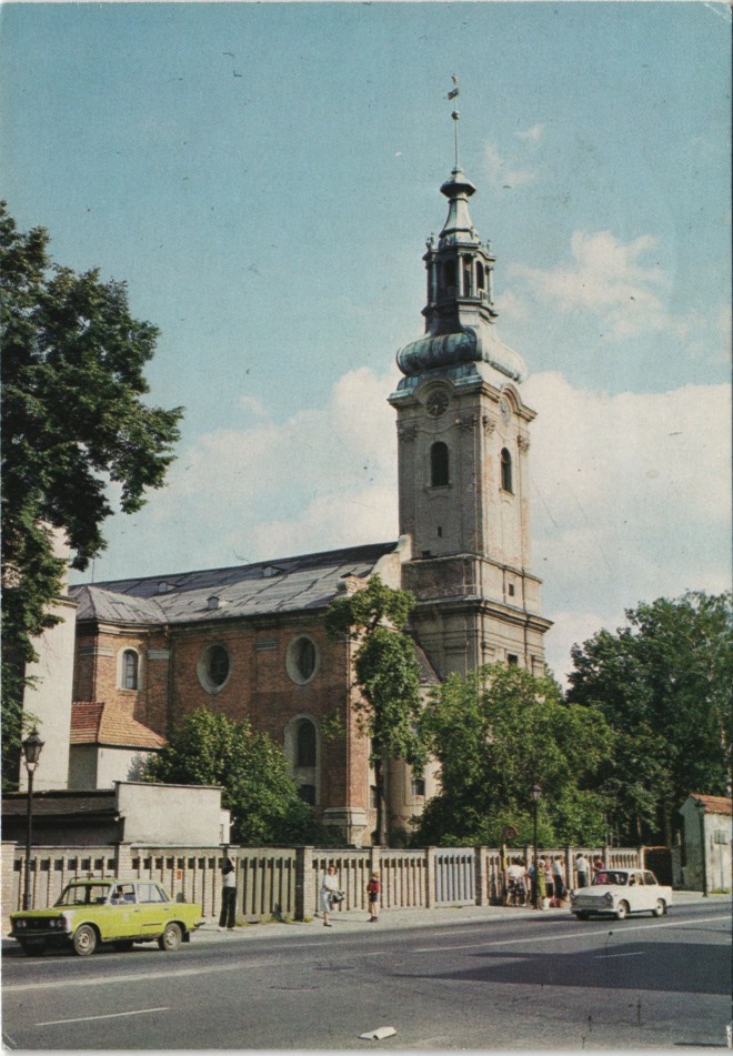 Photo Card: Miasto epoki Odrodzenia założone, Autos ua. Trabant vor Kirche - Leszno