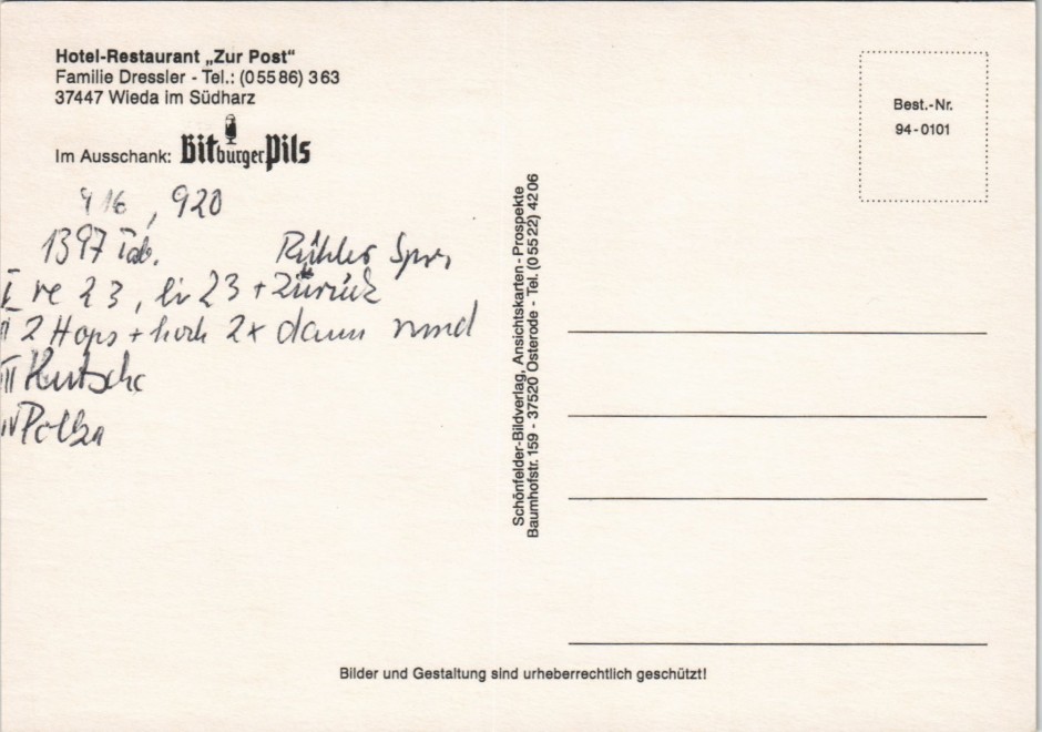 Postcart: Gasthaus zur Post MB - Wieda (Harz)