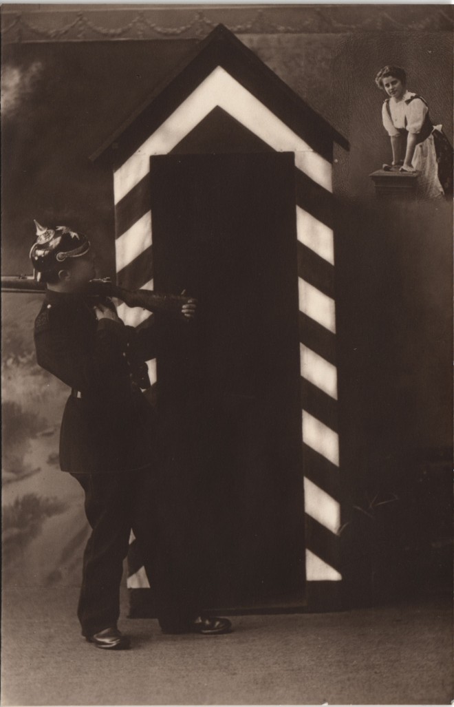 Postcart: Atelierfoto - Soldat schaut auf Drau Fotomontage