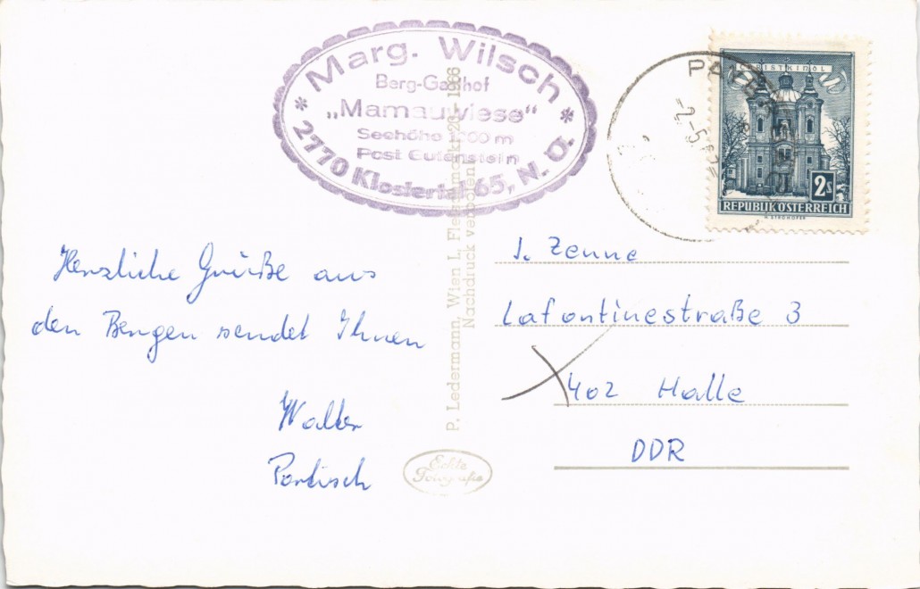 Photo Card: BERG-GASTHOF MAMEAUWIESE Klostertal Niederösterreich - Klostertal
