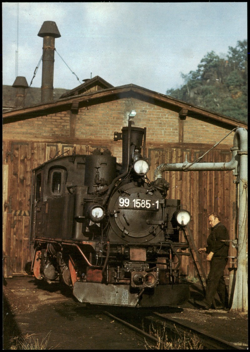 Postcart: Bahnhof Eisenbahn - Schmalspurbahn - Wolkenstein