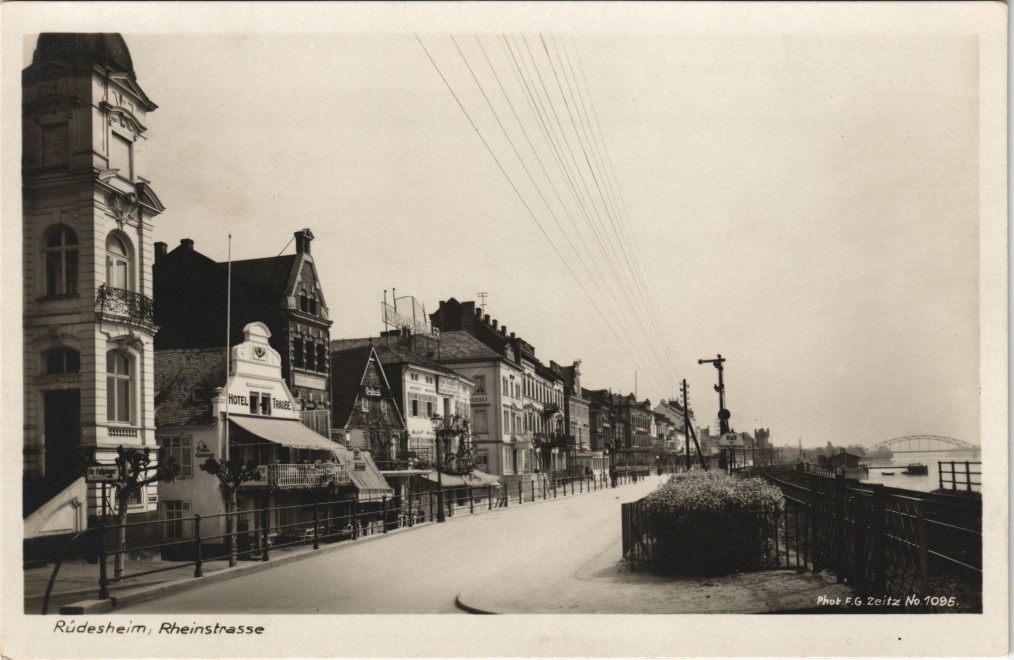 Postcart: Rheinstraße, Hotels Fotokarte - Rüdesheim (Rhein)