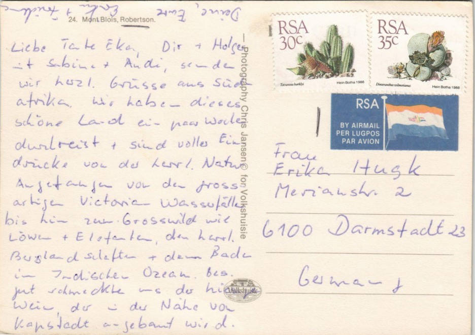 Photo Card: Weinberge South Africa Landschaft Mont Blois Robertson - Südafrika