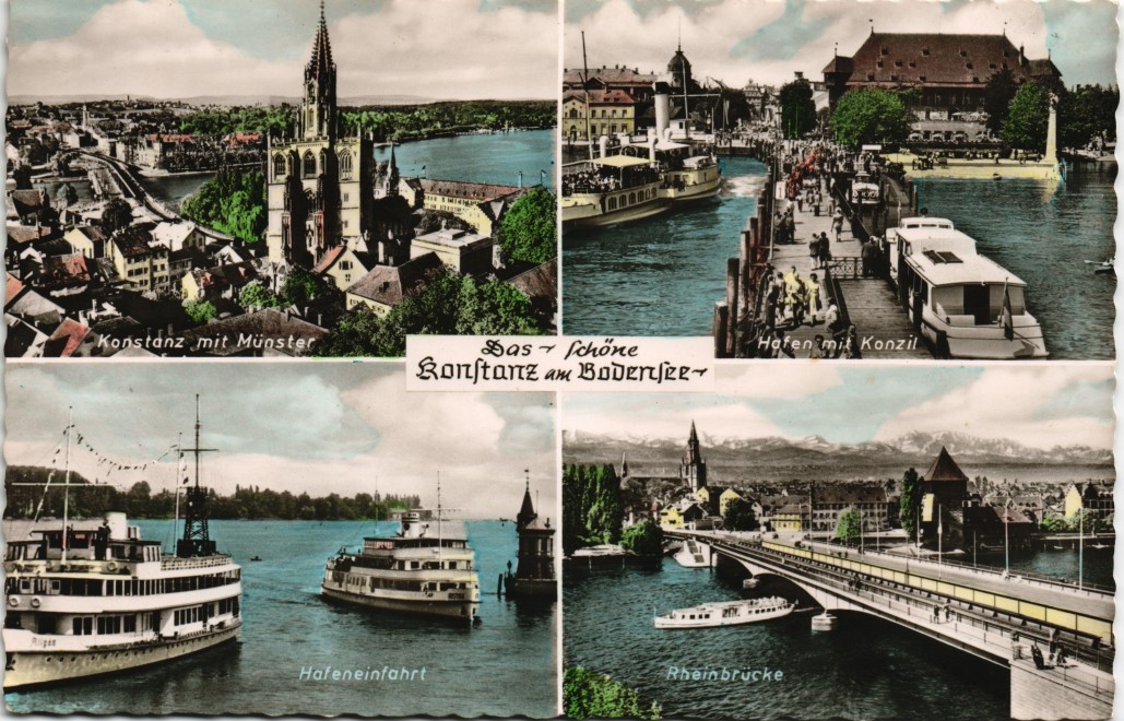 Photo Card: Mehrbildkarte 4 Fotos mit Hafen, Stadt- u. Brückenansicht - Konstanz
