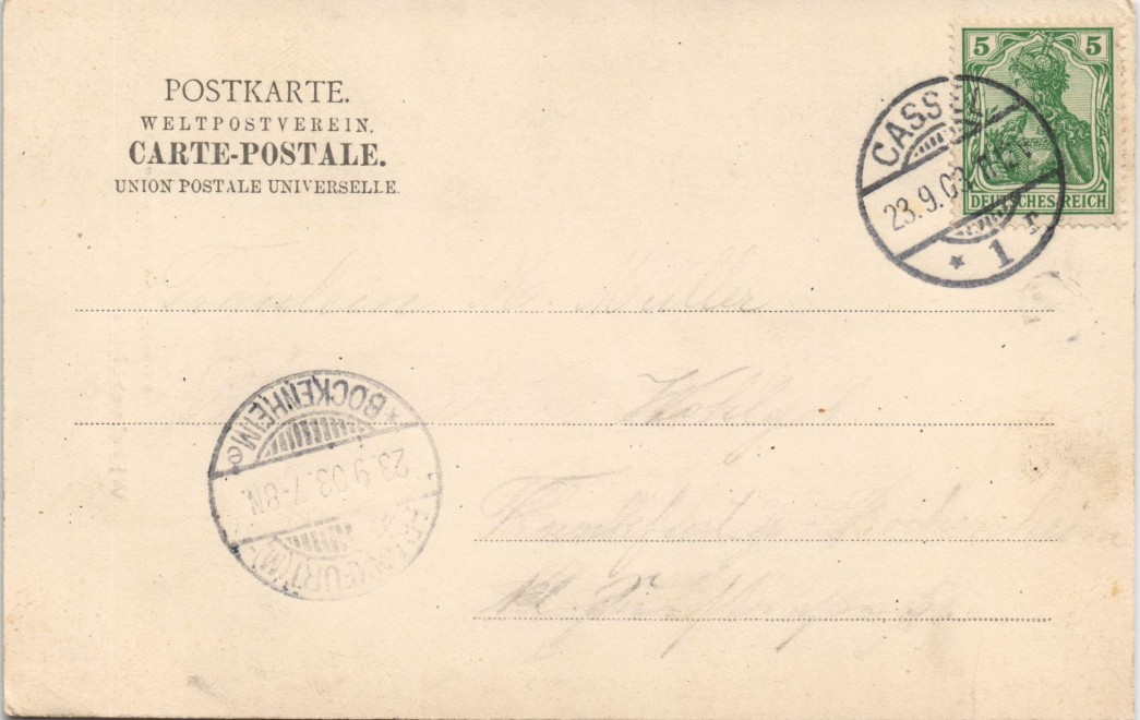 - Herkules und Kaskaden gel. Ankunftsstempel F._ Bockenheim