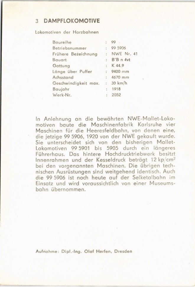 Trading Cards: Verkehr/KFZ Eisenbahn Dampf-Lokomotive Baureihe 99