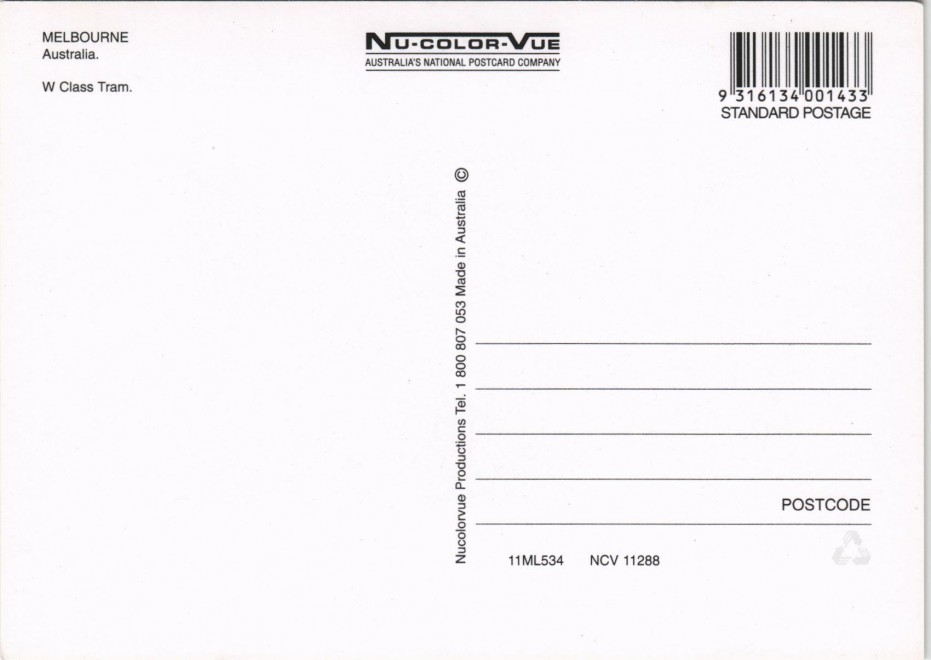 Photo Card: W Class Tram (Schienenverkehr Australien Straßenbahn) - Melbourne