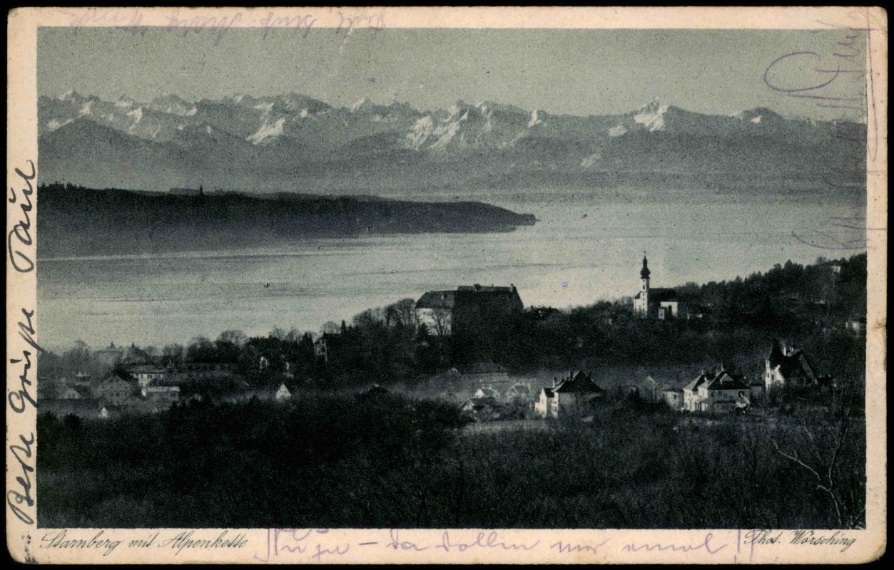 Postcart: Stadt mit Alpenkette - Starnberg