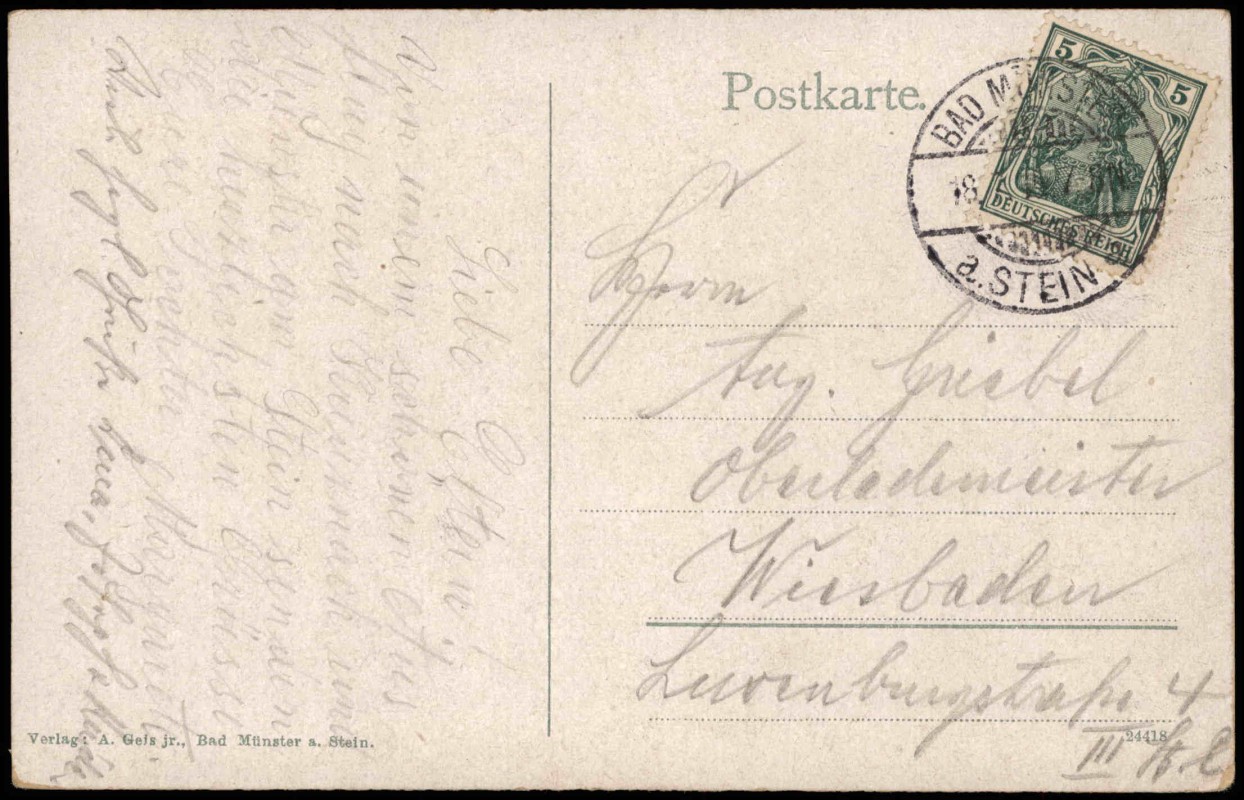 Postcart: Blick auf Bäderhaus m. Ebernburg. - Bad Münster am Stein-Ebernburg