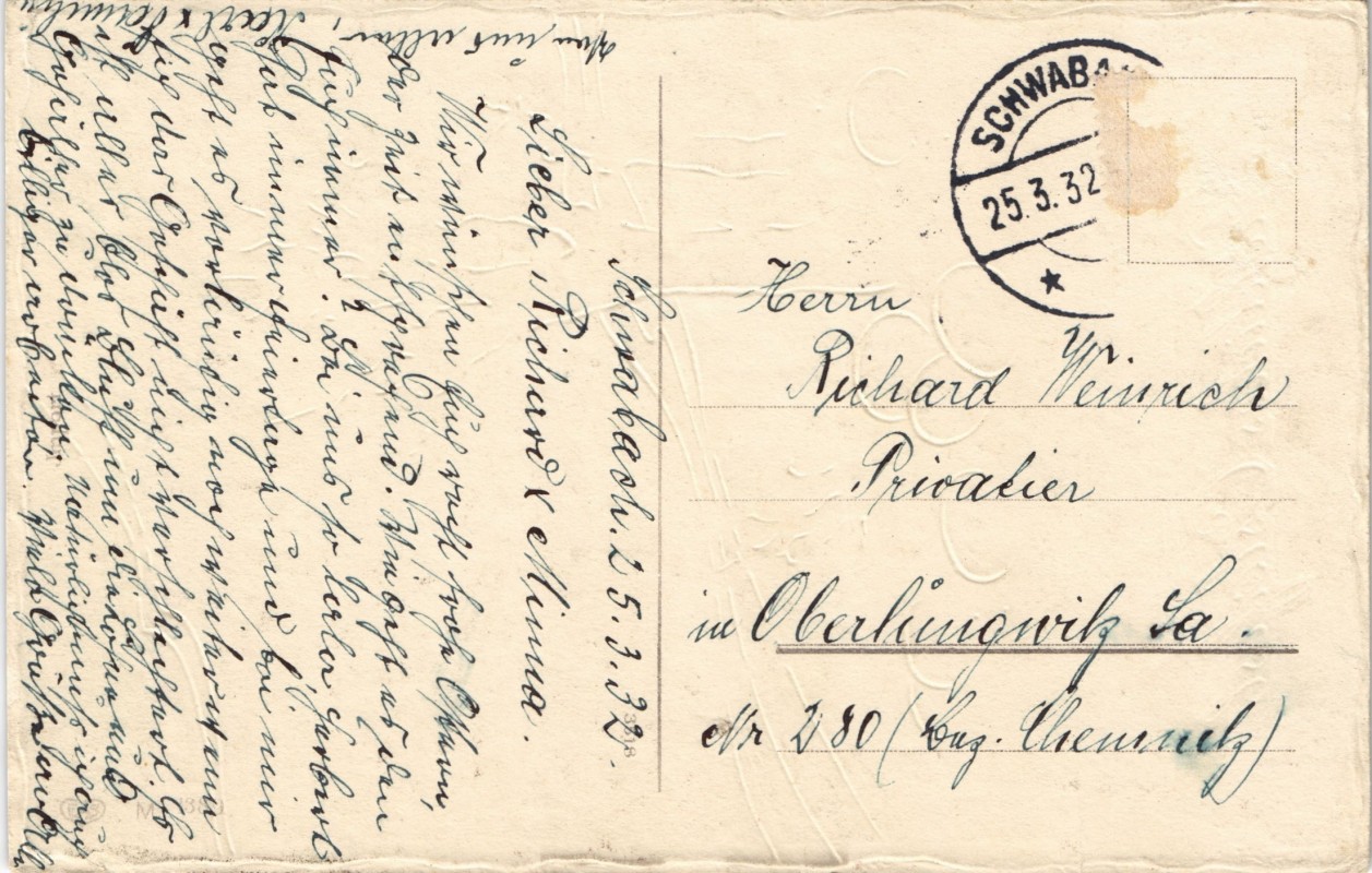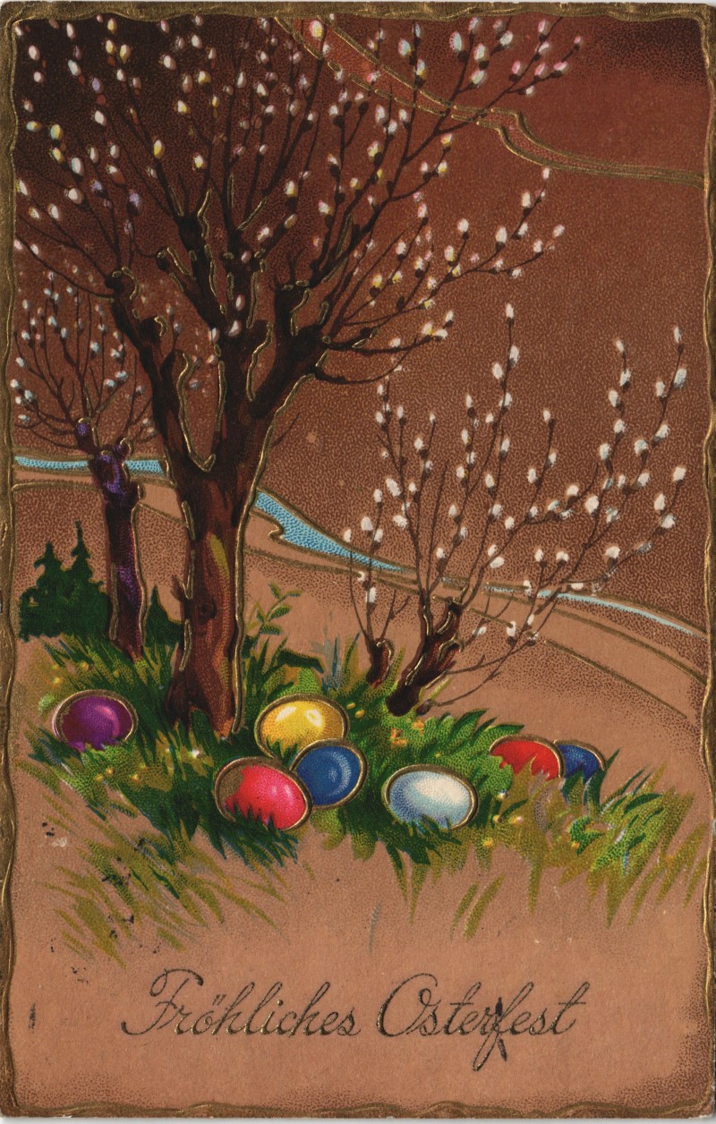 Postcart: Präge-Künstlerkarte Weidenkätzchen Ostereier Ostern / Easter