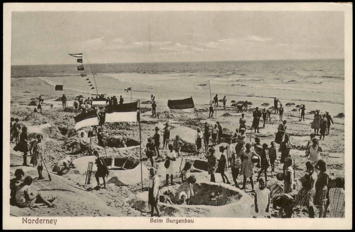 Postcart: Beim Burgenbau, Strandleben - Norderney