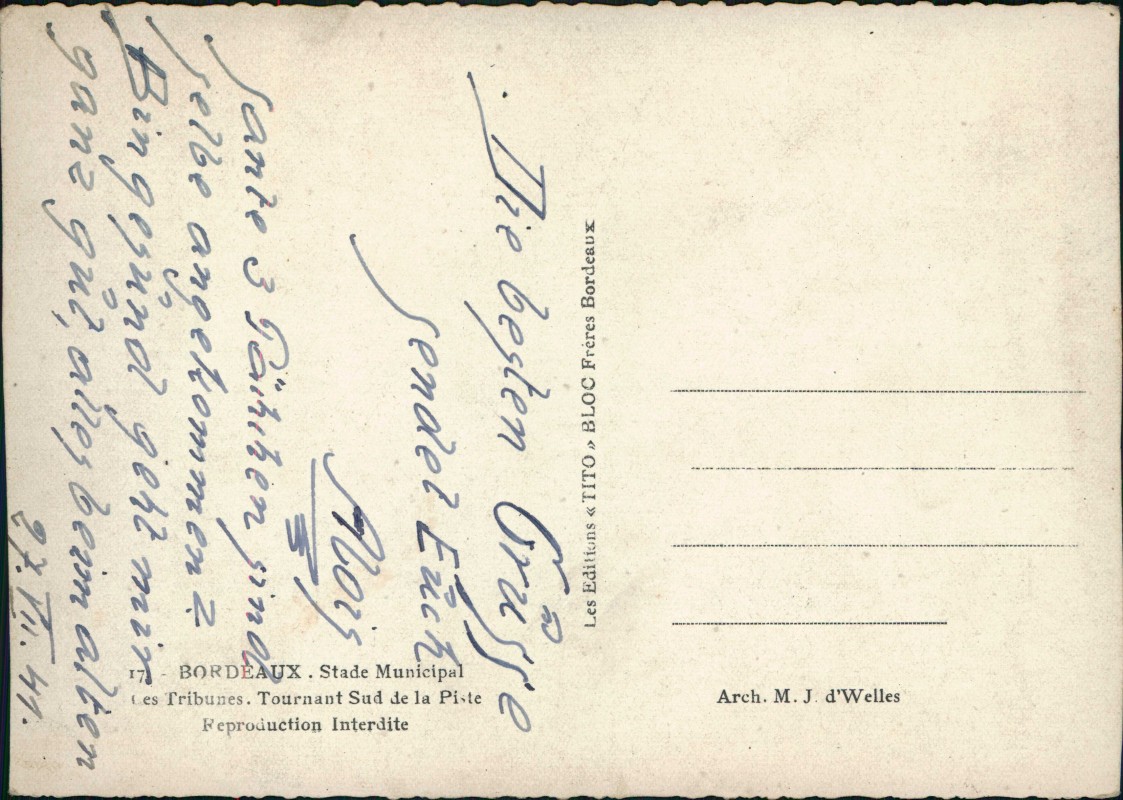 Postcart: Les Tribunes Stadion - Bordeaux