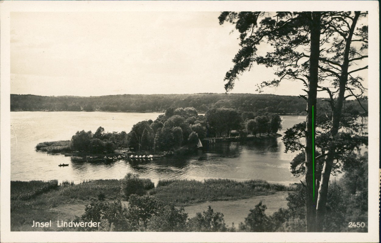 Postcart: Blick auf Insel Lindwerder mit Bootsanleger - Zehlendorf-Berlin