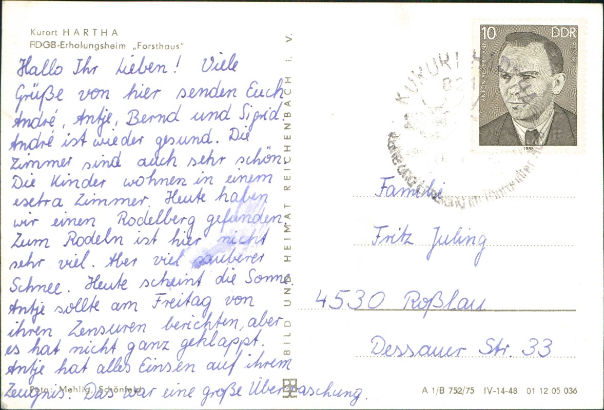 Photo Card: FDGB-Erholungsheim Forsthaus zur DDR-Zeit - Hartha