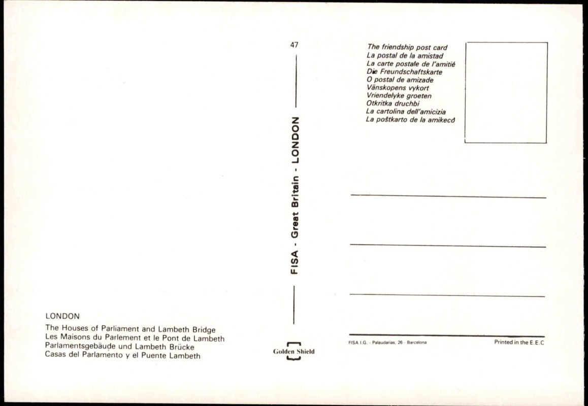 Photo Card: The Houses of Parliament and Lambeth Bridge - London