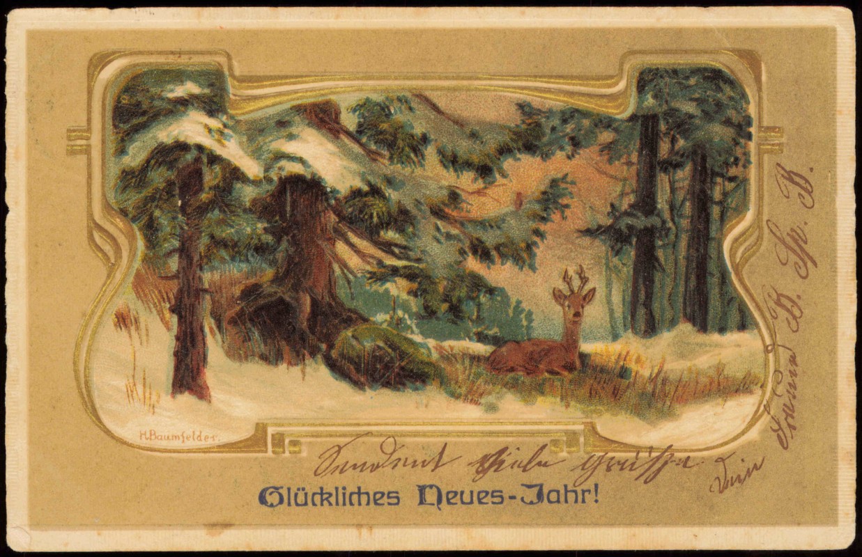 Postcart: Neujahr Sylvester New Year (Stimmungsbild aus dem Wald)