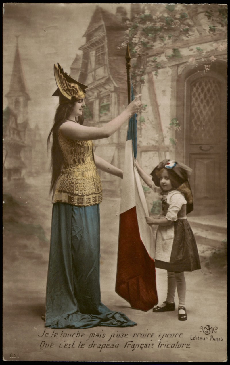 - Patriotika Frankreich Patrie France Frau und Kind mit Fahne