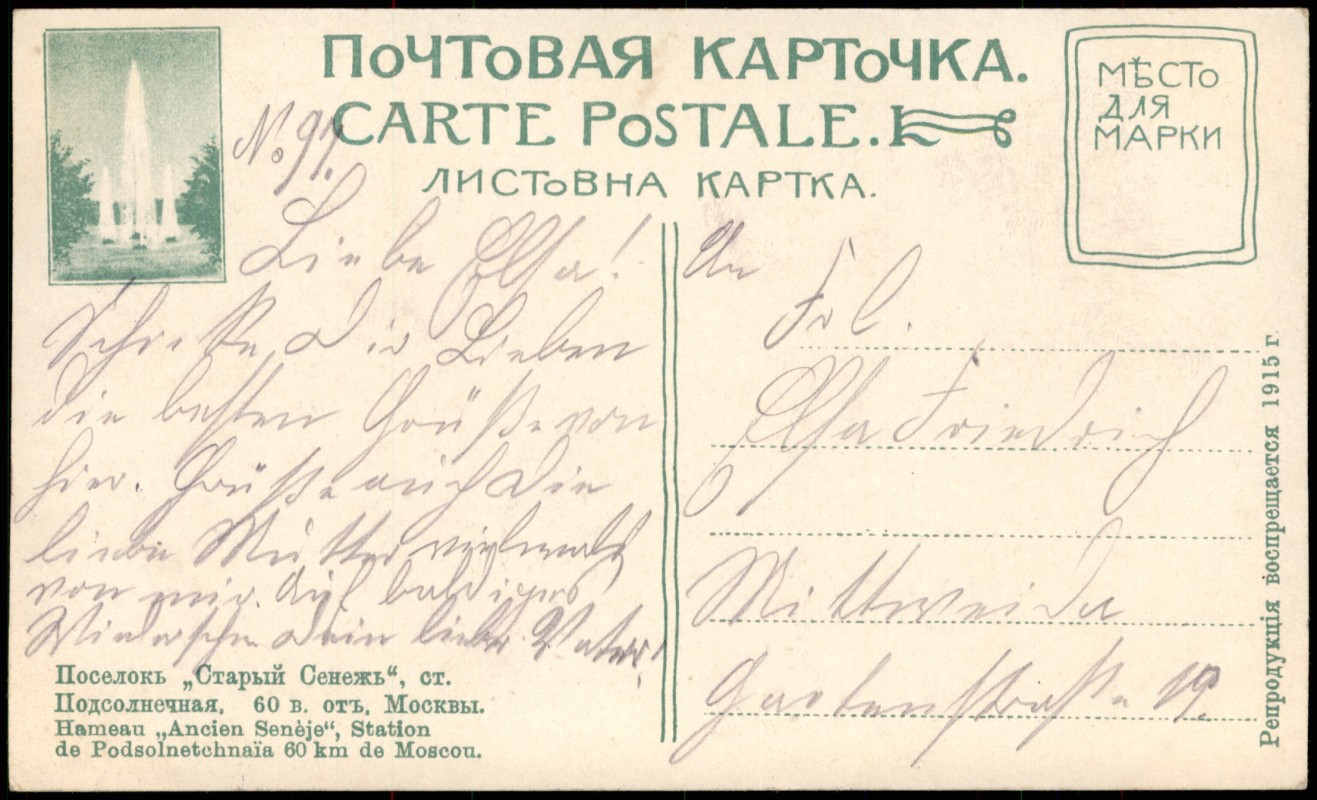 Postcart: Rußland Россия Hameau ,,Ancien Senèje", Station Поселокь, Старый Сенежь", ст. - .Russland