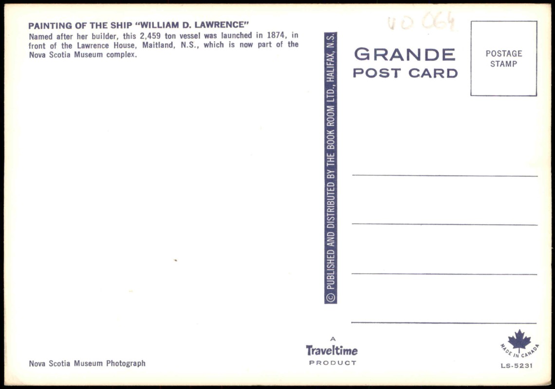 Postcart: Segelschiff "William D. Lawrence" Largest Wooden Full-rigger Built In Canada
