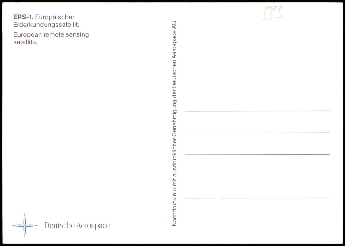 Postcart: Flugwesen - Raumfahrt ERS-1. Europäischer Erderkundungssatellit.