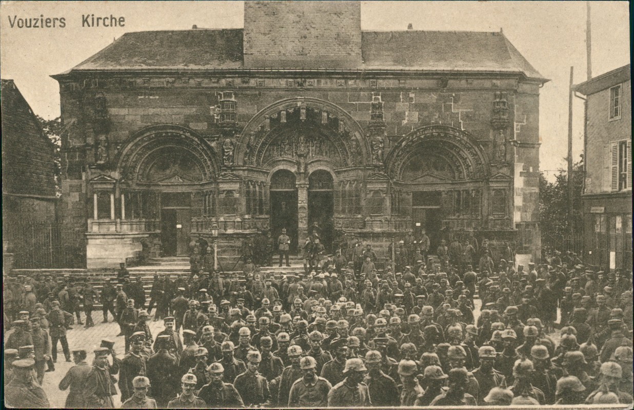 Postcart: Soldaten vor der Kirche WK1 Militaria - Vouziers