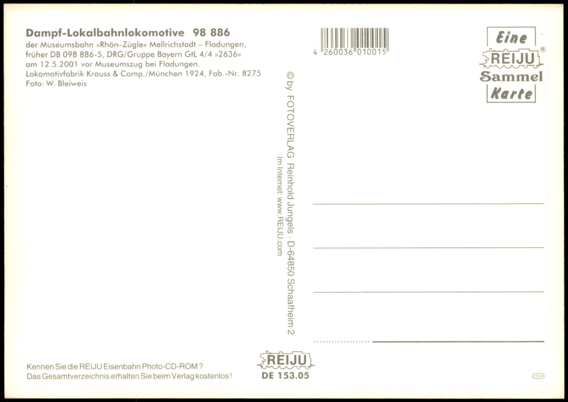 Photo Card: Dampflokomotive Dampf-Lokalbahnlokomotive Museumsbahn Rhön-Zügle bei Fladungen