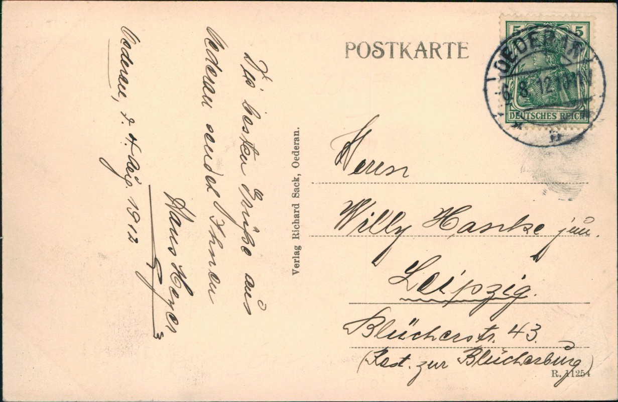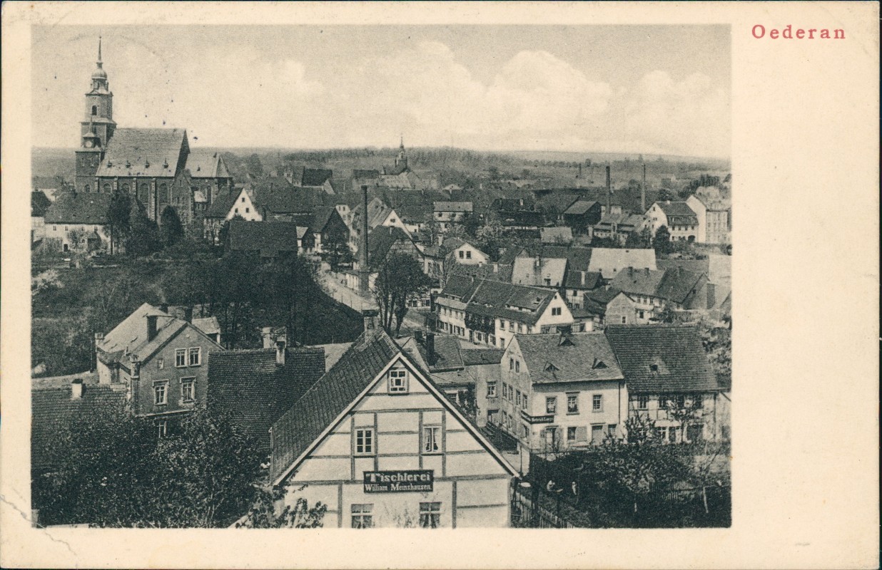 Photo Card: Panorama-Ansicht; Blick auf Haus mit Tischlerei - Oederan