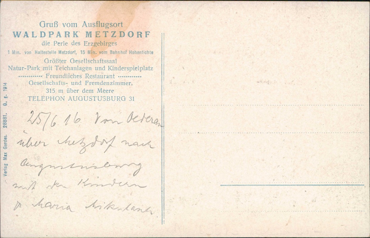 - Gruss v. WALDPARK METZDORF, Augustusburg im Hintergrund