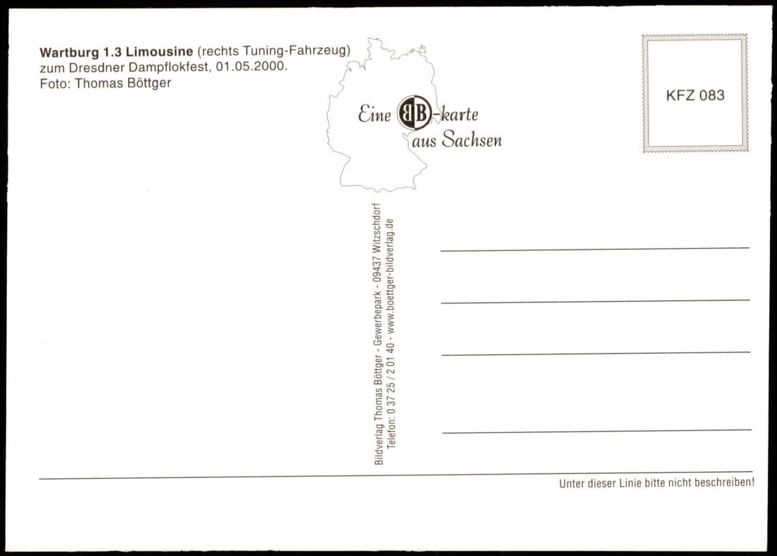 Postcart: Wartburg 1.3 Limousine Dresdner Dampflokfest Löbtau - Dresden