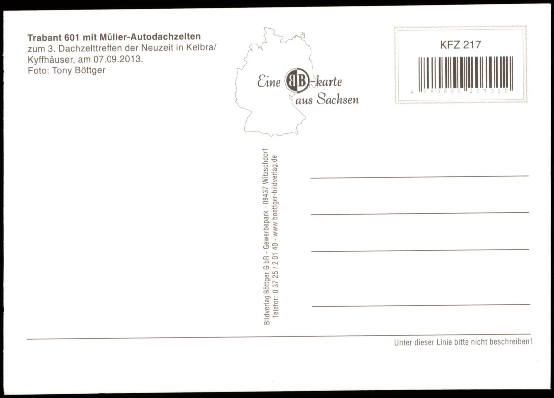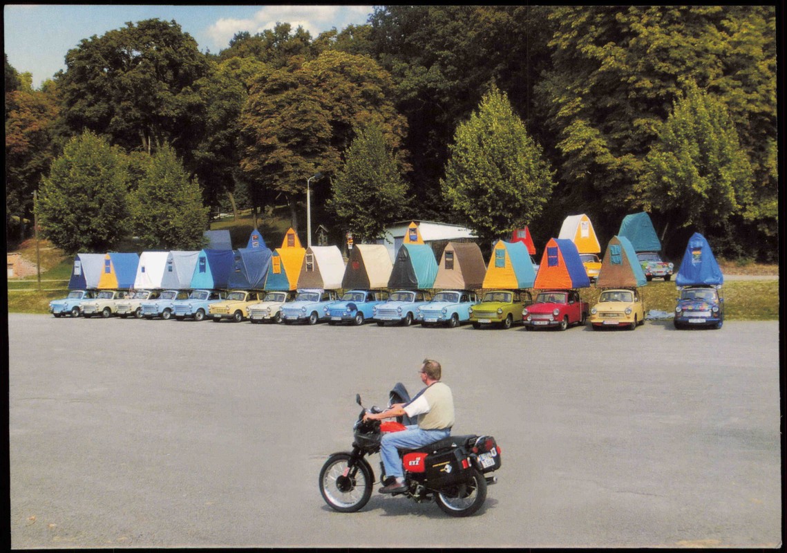 Postcart: Trabant 601 mit Müller-Autodachzelten Kelbra Kyffhäuser