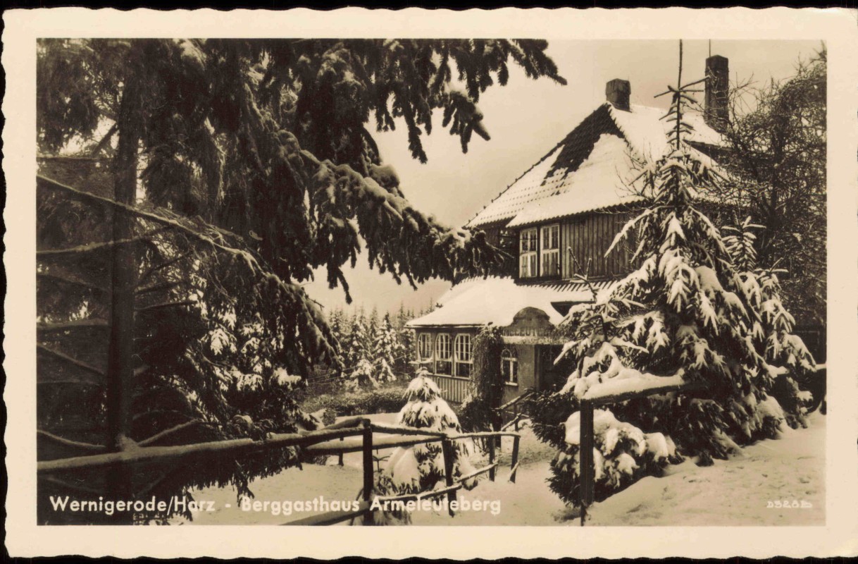 Photo Card: Berggasthof Armeleuteberg im Winter zur DDR-Zeit - Wernigerode
