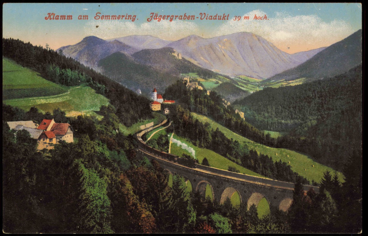 Postcart: Jägergraben-Viadukt Lokomotive - Klamm am Semmering-Breitenstein (Niederösterreich)