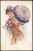 - Künstlerkarte Mode Kleidung schöne Frau Schirm Hut