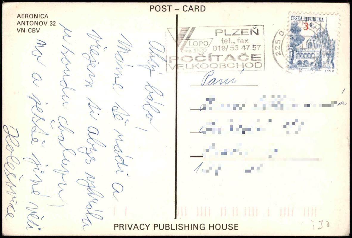 Postcart: ČESKÁ REPUBLIKA Flugzeug AERONICA ANTONOV 32 - .Tschechien