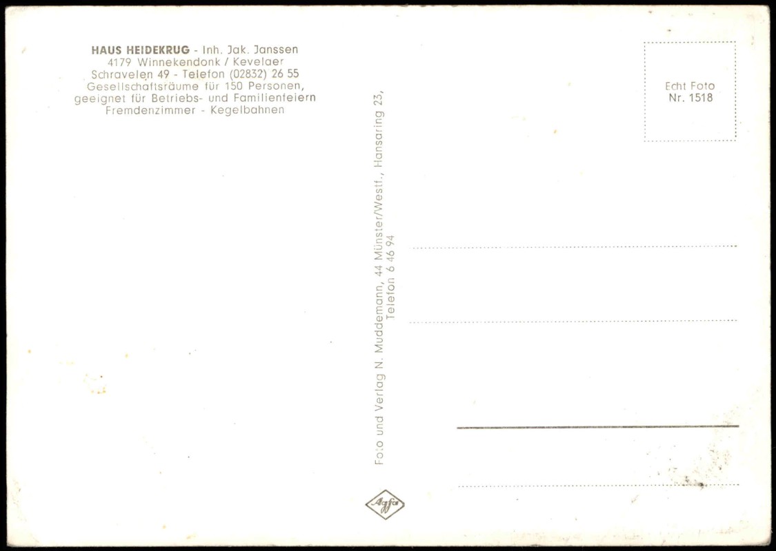 Postcart: Haus Heidekrug - Schravelen 49 - Winnekendonk-Kevelaer