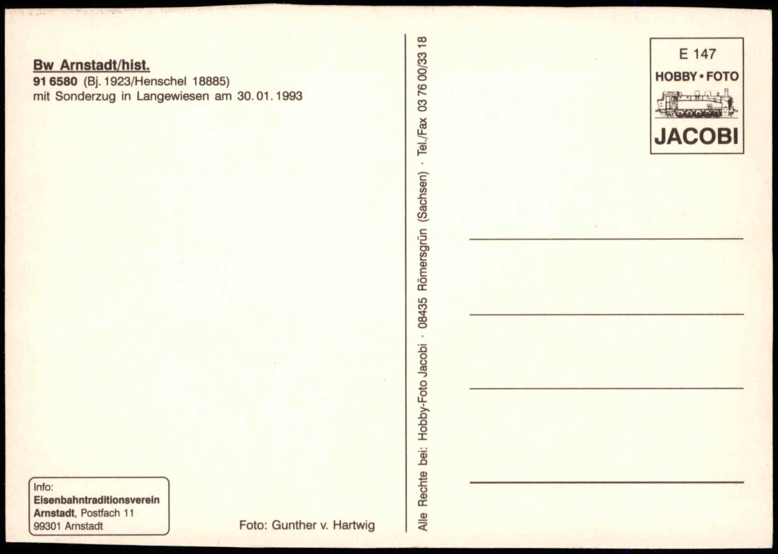 Postcart: Eisenbahn Dampflokomotive BW - Langewiesen